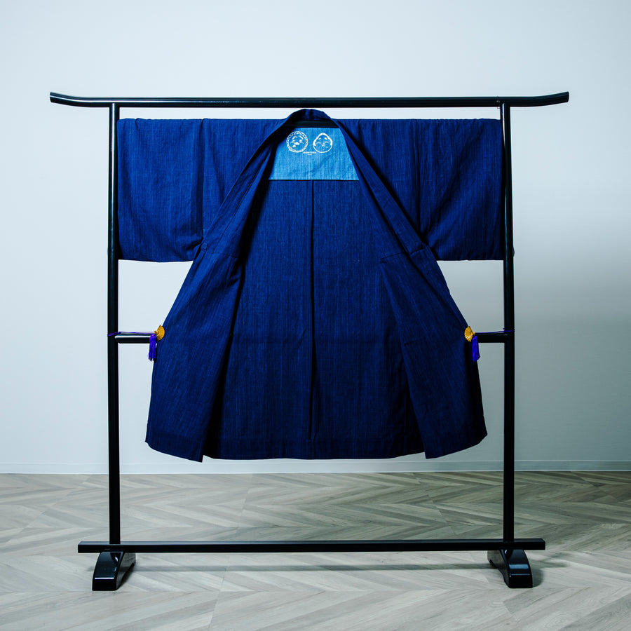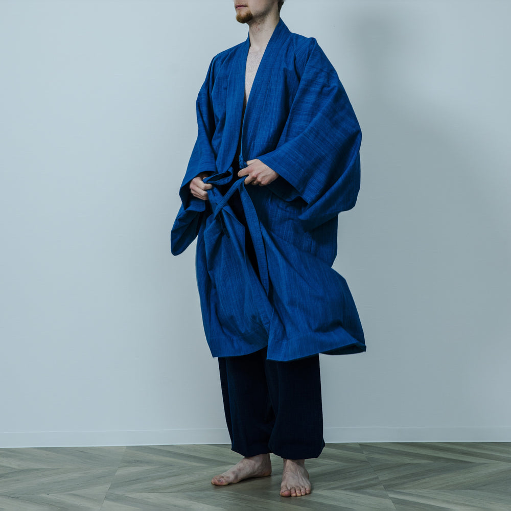 In the 17th century, Johannes Vermeer, a Dutch painter,frequently depicted the “Japonse rok” in his masterpieces. This was actually a “dotera,” a kimono-style garment worn by scholars of the time to convey the Japanese kimono. AISHITERU has recreated this dotera in modern times using traditional indigo dyeing techniques. The generously sized and quaint design makes it a luxurious and comfortable garment. It’s available in a one-size-fits-all unisex style.